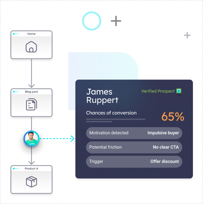 Transform your website into a powerful sales machine. By understanding every step your visitors take and predicting the next ones, Pathmonk will trigger personalized buying experiences increasing the chance of conversion.