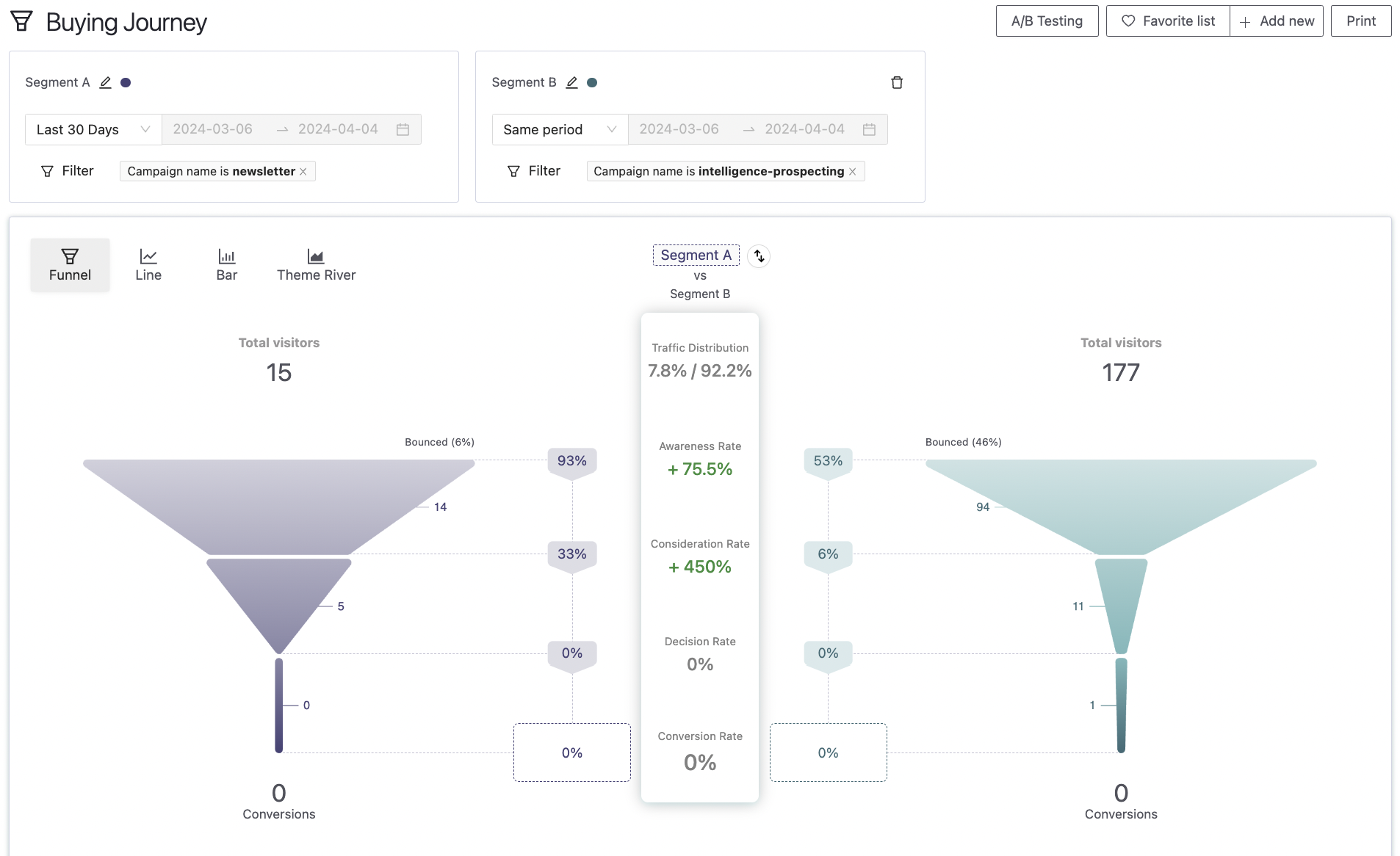 One of Pathmonk Intelligence’s standout features is its ability to compare the performance of different campaigns side-by-side.