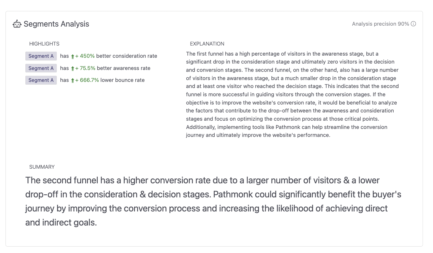 Pathmonk Intelligence sets itself apart by providing a straightforward AI-powered segments analysis, giving marketers actionable insights without the need for manual data crunching.